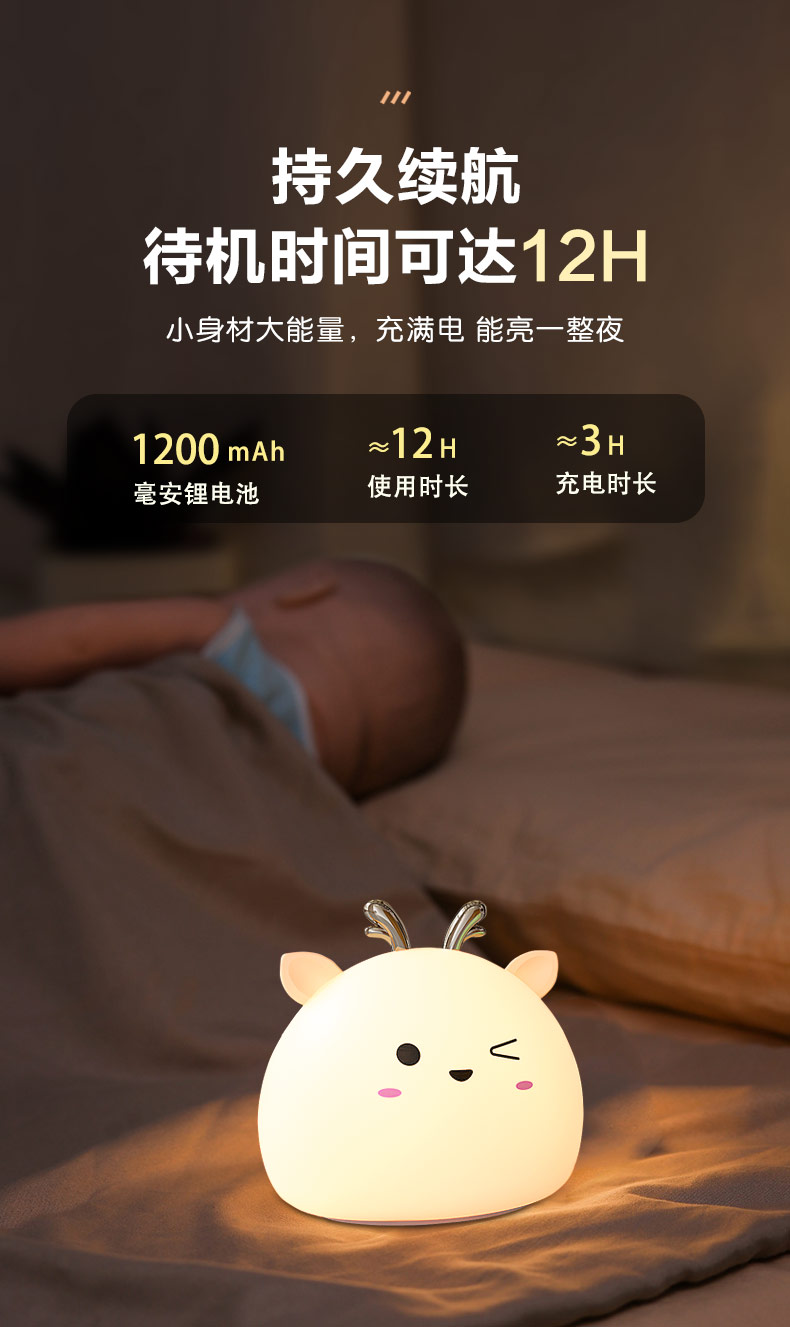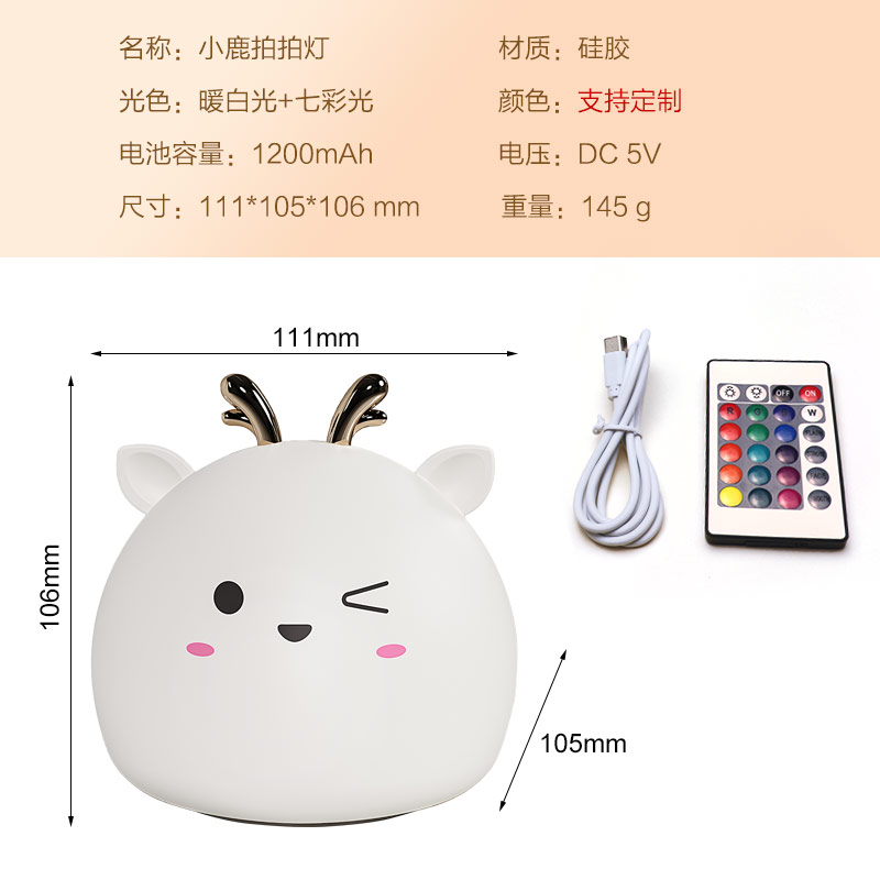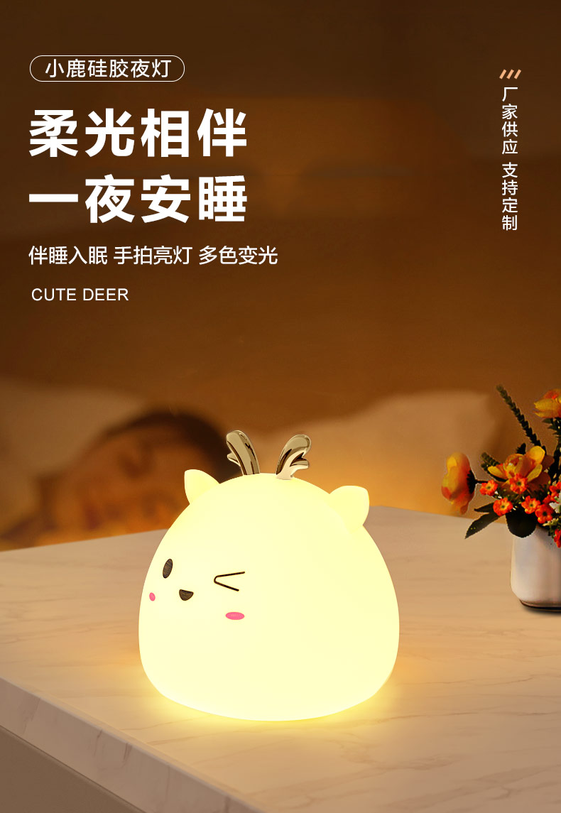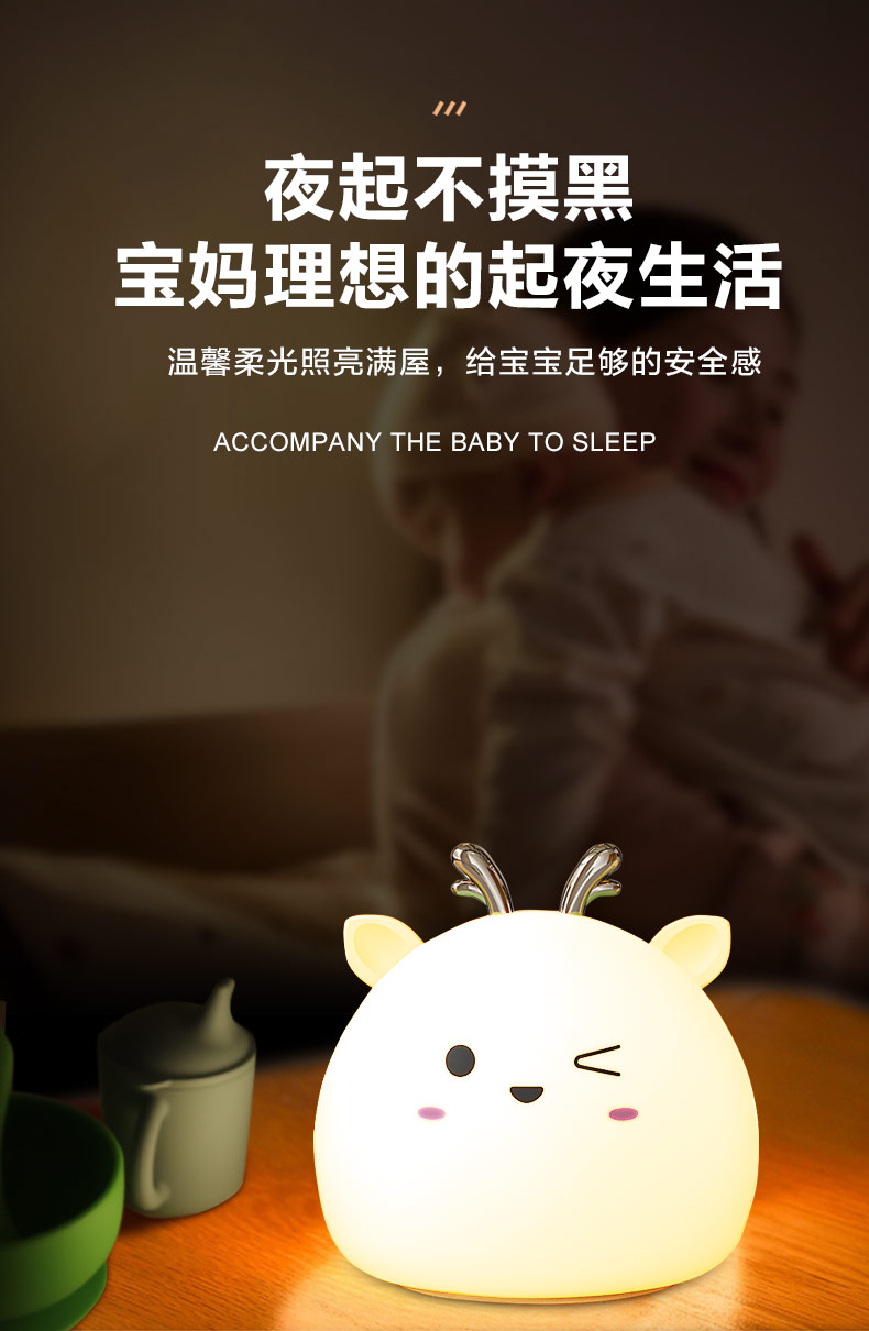 您的位置:首頁 > 產品中心 > 硅膠家居用品 > 拍拍燈 > 小鹿硅膠小夜燈 拍拍感應燈喂奶起夜燈