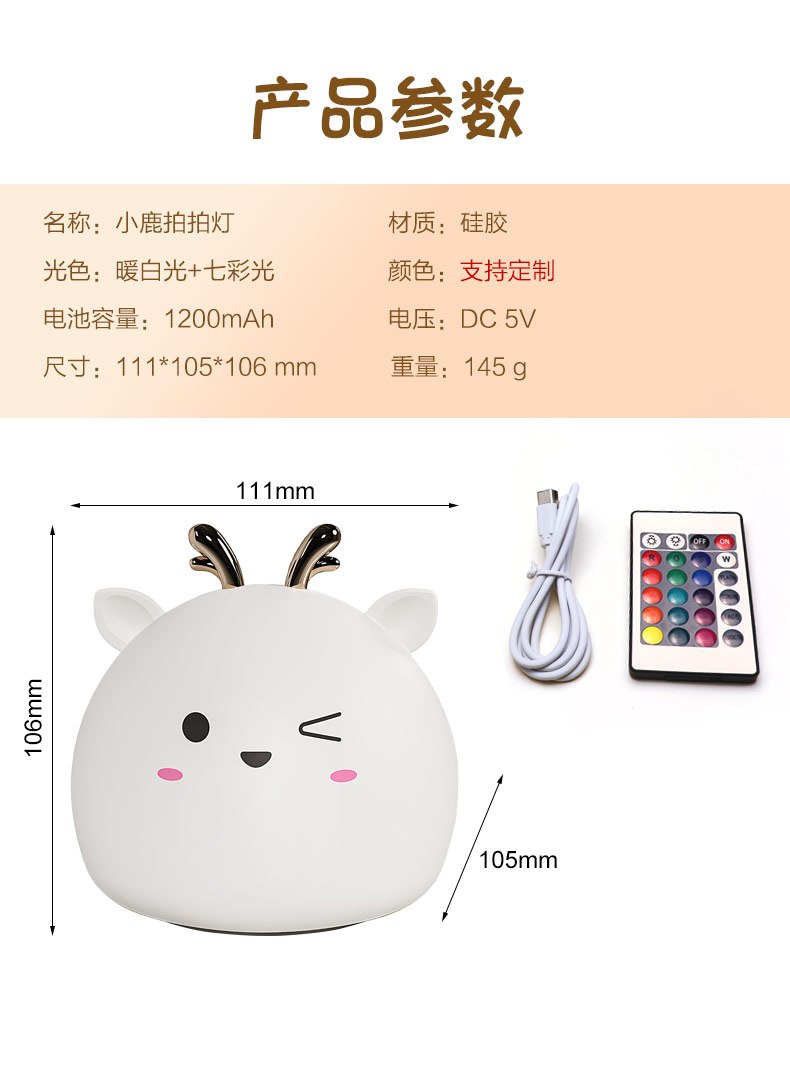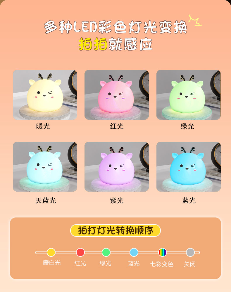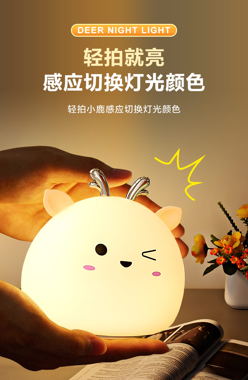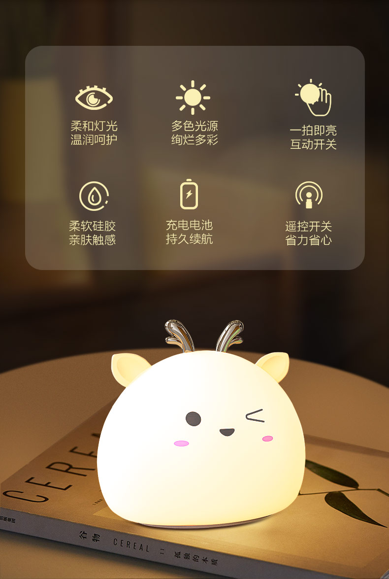 您的位置:首頁 > 產品中心 > 硅膠家居用品 > 拍拍燈 > 小鹿硅膠小夜燈 拍拍感應燈喂奶起夜燈